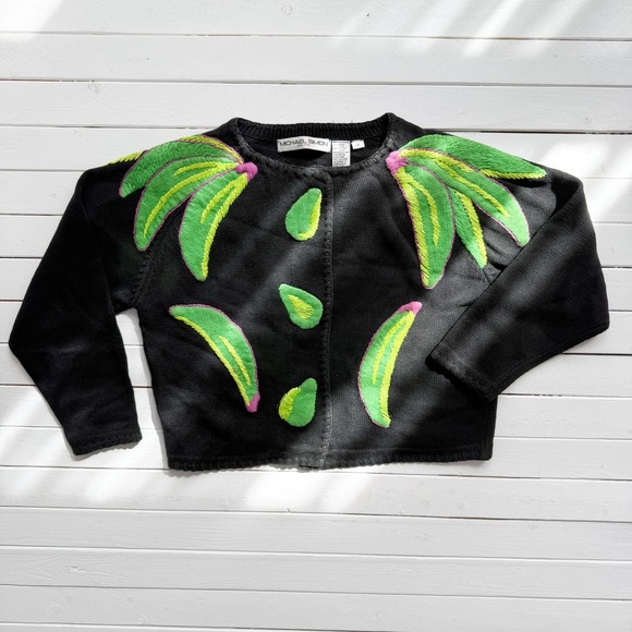 - Women >Sweaters >Cardigans > vtg Michael Simon green bananas embroidered black cardigan sweater
