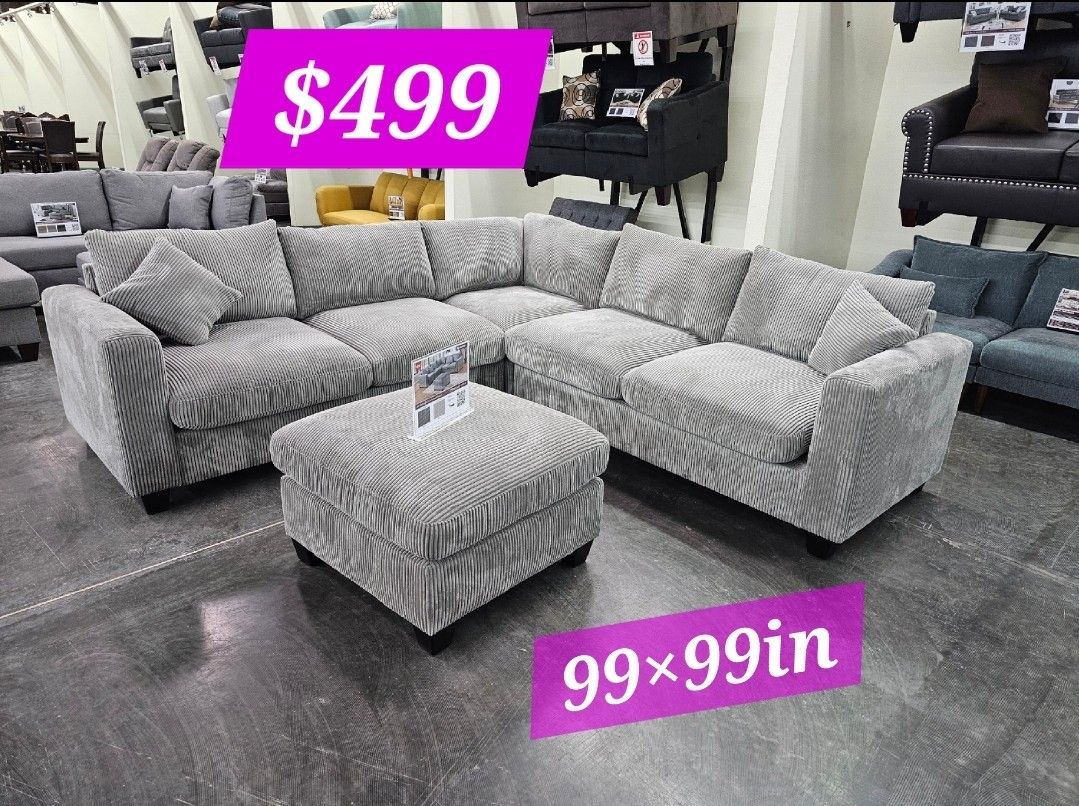 | Product Features | BRAND NEW 4PCS SECTIONAL SOFA SET WITH OTTOMAN AND ACCENT PILLOW INCLUDED ALL NEW IN BOX ASSEMBLE REQUIRED AVAILABLE IN GRAY OR IVORY CORDUROY | ||