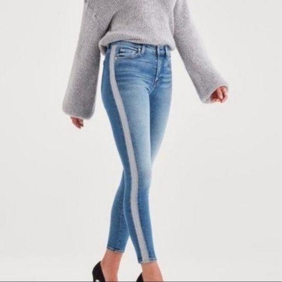 - Women >Jeans >Skinny > 7 For All Mankind The High Waist Ankle Skinny Silver Stripe Blue Women 30 Jeans