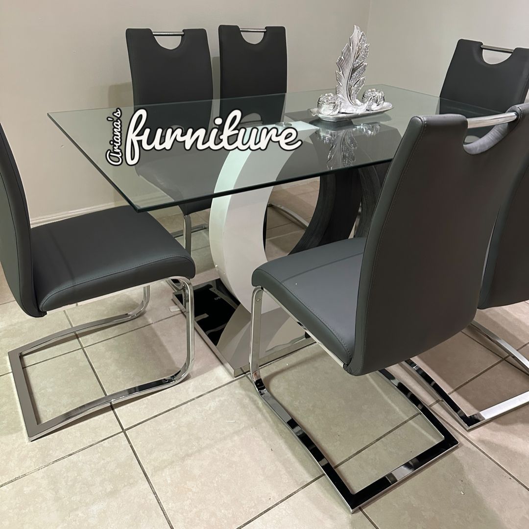 - Home & Garden >Kitchen & Dining > new glass top ta ble + 6 chairs 63x35