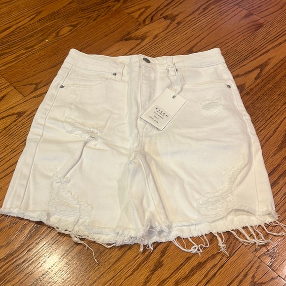 NWT Risen Jeans Woman’s White High Rise Distressed Mid Thigh Jean Shorts Size M