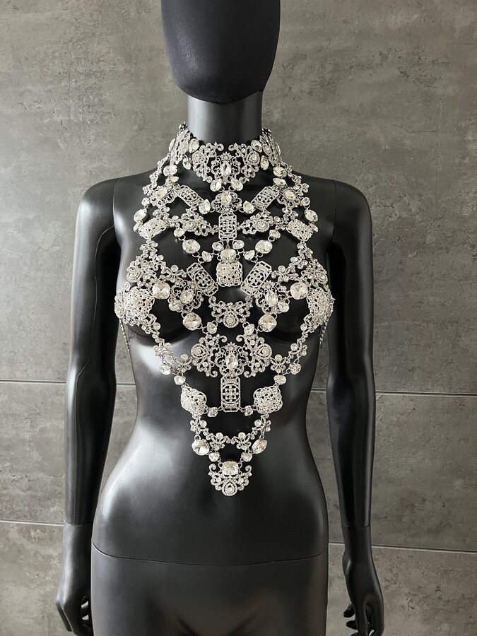 | Product Features | Details:Bridal crystal necklace with silver crystals & rhinestone This stunning bridal necklace with silver color crystals Shining effect this necklace, will not leave you indifferent Shine this necklace for will adorn your dress in a truly beautiful way. The necklace f designed as bridal jewelry or as a bridesmaids gift, maybe on prom or party too! Perfect for for bare back & shoulders Size 36-38 Please note - all sales in my store are final & not for return Crystal Necklace~Wedding Statement Necklace ~Bridal Necklace~Crystal Shoulder Chain~ | ||