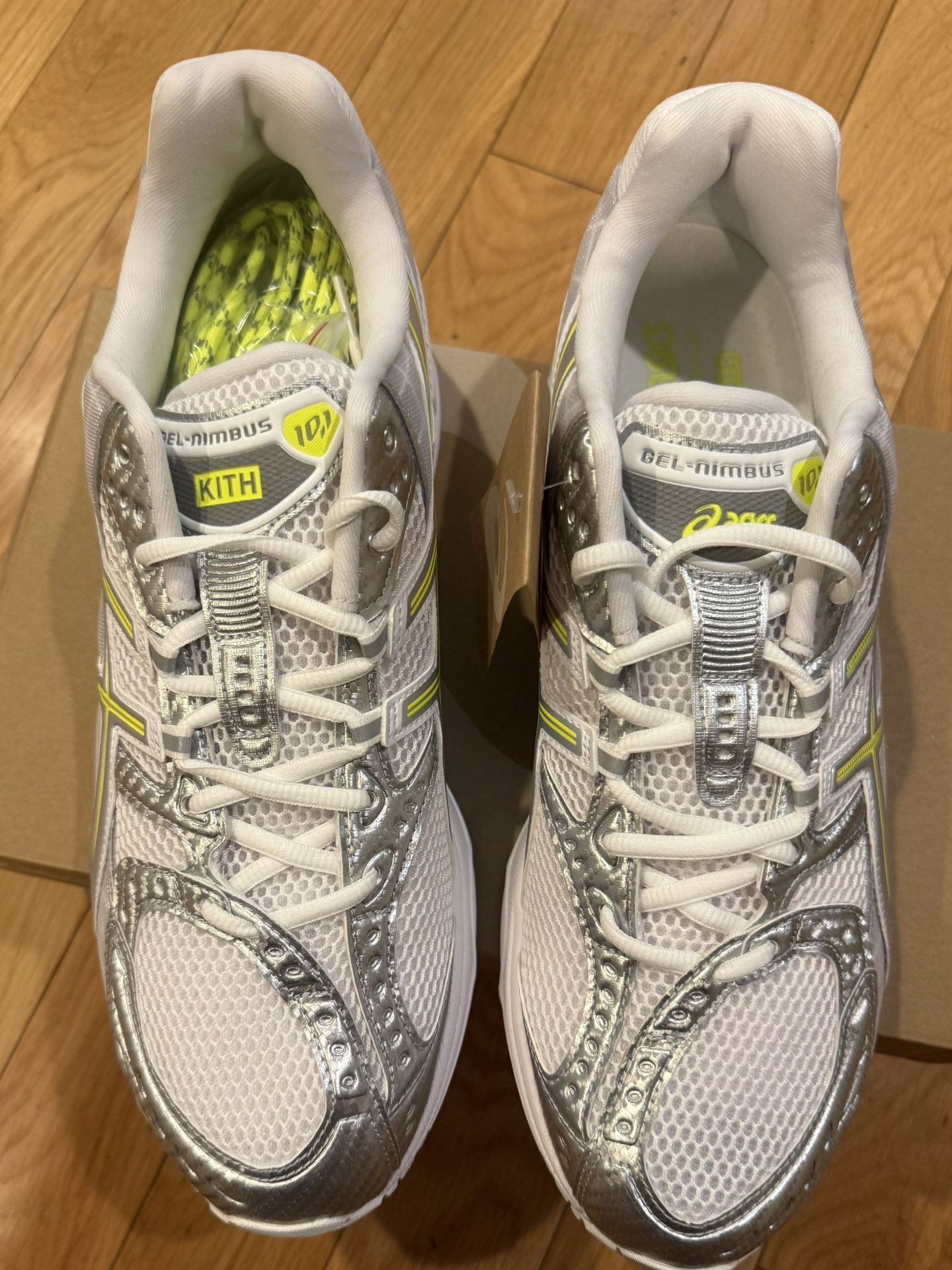| Product Features | KithASICSNimbusBrand New - DSWhite / VoltSize 13Located in Eagle Rock | ||