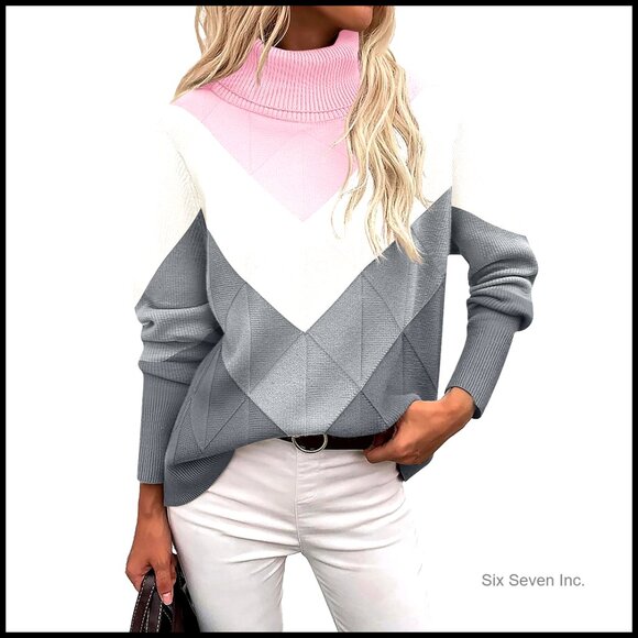 - Women >Sweaters >Cowl & Turtlenecks > Chunky Knit Turtleneck Sweater Long Sleeve Pullover Trendy Fall Winter Top