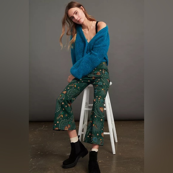 - Women >Pants & Jumpsuits >Boot Cut & Flare > FARM Rio Anthropologie Womens Small Fernanda Flared Pants Cotton Star Bird Print
