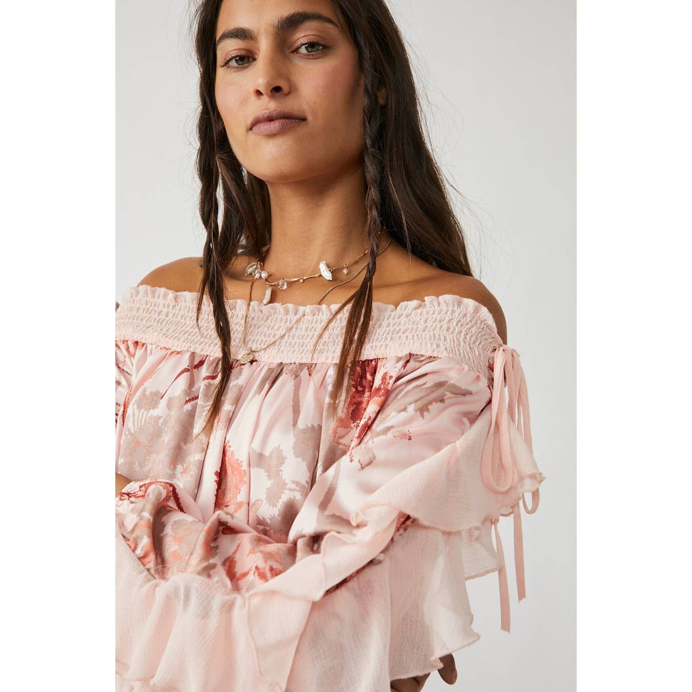 | Product Features | Seller DescriptionNew Free People Born To Love Bodysuit Retail $128 SMALL Lotus Combo - PinkSo chic printed bodysuit featured in an off-the-shoulder style with feminine ruffled sleeves and adjustable lace-up detailing.Relaxed fit, thong bottom0Soft printed fabrication, ruffle trim at sleeves, adjustable lace-up detailing at both shoulders, smocked detail at neckline, sheer bottomThis feminine bodysuit can be dressed up or down for the perfect day-to-night transition.IntimatelyOur softest intimates and best-ever base layers. Intimately is an in-house label.100% PolyesterHand Wash ColdImportMeasurements for size smallPit to Pit: 21 inSleeve: 20.12 inWaist: 28 inHips: 29.5 inBrand label clipped ✂️ cut to prevent retail store return.Pink | ||