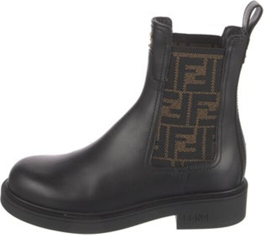 - Women's Fashion >Shoes >Platforms >Platform Boots > Fendi Leather Ankle Chelsea Boots Black Zucca FF Logo Round-Toes Platform Includes Box & Dust Bag Designer