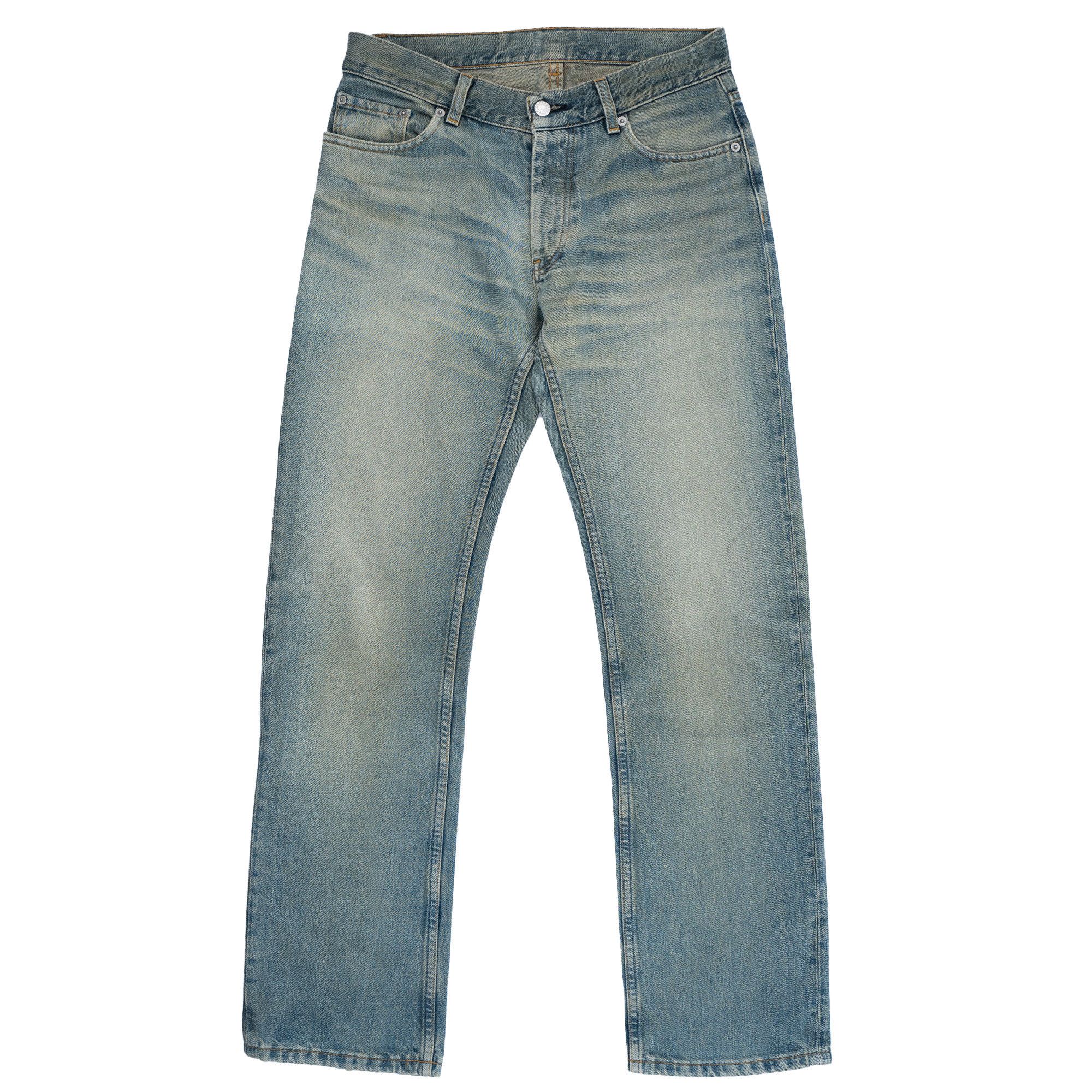 | Product Features | Seller DescriptionOpen to trades in vintage Helmut Lang.Helmut Lang jeans from 1998, featuring a distinctive stained wash with soft fading through the thighs and knees. Classic five-pocket silhouette in original unhemmed length. A rare archival piece that captures the raw, utilitarian edge of Lang’s late ’90s denim.Excellent vintage condition. Unheeded.Waist: 39 cm, Inseam: 81 cm, Leg opening: 20 cm.Blue | ||