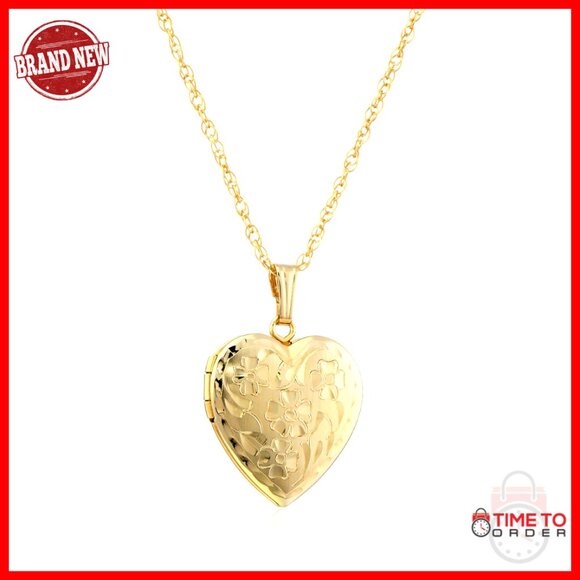 - Women >Jewelry > 14K Gold-Filled Hand Engraved Heart Locket Necklace 18 Chain