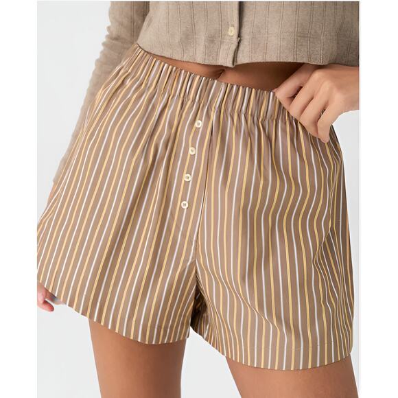 - Women >Shorts > Leset Yoshi Boxer Shorts Mocha Brown Stripe Pull On Size Medium