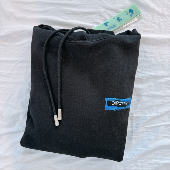 | Product Features | 100% authentic Off-White black hoodie with blue painted arrows. Brand new with tags. Bought it from Farfetch more than 3 years ago, been hanging in my closet getting dusted. I don’t think I will wear it if I have not choose to wear it in the past 3 years 😂 selling it for more room in my closet | ||