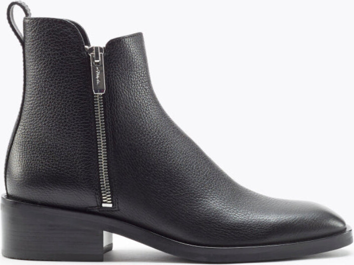 | Product Features | Details:The New Alexa. Durable. Pebbled leather with a water resistant coating, and a rubberized outsole that does not need to be replaced as often as leather. Functional. Refined zipper and puller tabs with engraved 3.1 Phillip Lim logo. Back pull tab slightly higher for ease. Comfortable. Lightweight and flexible rubber outsole with outstanding shock absorption. More fitted shaft and subtle square toe shape. | ||