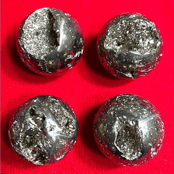 | Product Features | Set of four metallic spheres. Perfect for home decor. Adds a modern touch.1)8.2 ounces 2)7.8 ounces 3)8.6 ounces 4)8.2 ounces Total 32.8 ounces or 2.05 pound.Pyrite from PeruMina Acari Arequipa Peru. | ||
