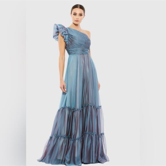 - Women >Dresses >Maxi > Mac Duggal One-Shoulder Tiered Chiffon Gown Fusion Blue Size 16 NWT