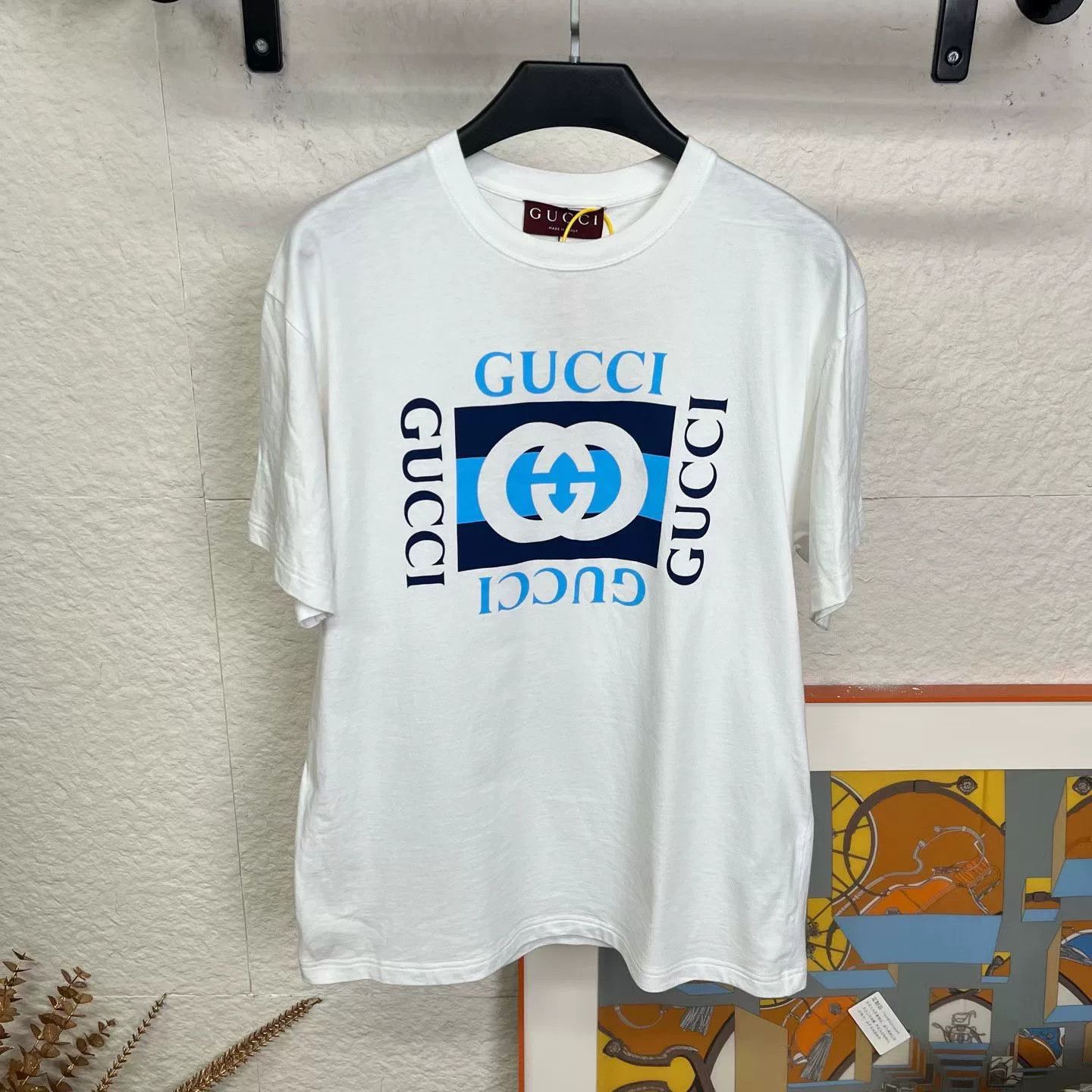 | Product Features | Seller DescriptionThis Gucci short sleeve t-shirt in white features a bold square graphic design, showcasing the brand's logo. It is brand new and comes in a size S. Gucci, founded in 1921, is renowned for its luxury leather goods and innovative designs. Pair this versatile tee with jeans for casual outings or layer it under a blazer for a chic look, suitable for spring and summer wear. DETAILS - Size: s (send message if you need more measurements. Please tolerate with 0.5-1 inch error due to hand measuring). - Condition: kept in 10/10 brand new condition as shown in the pics, no flaws. Send message for more details. SHIPPING - Carrier: Normally FedEx Express with tracking available within 5 business days post-order. - Estimated Delivery: Normally 4-5 business days after dispatch. - Shipping Support: Contact us immediately for any tracking issues or delays. ORDER POLICIES - Final Sale: Due to the unique nature of this item, all sales are final except in cases of authenticity or if the item is not as described. - Authenticity & Condition Protection: Every item undergoes a thorough inspection and authentication check. If there's any issue with authenticity or description, contact us immediately for a resolution and we will response ASAP. NOTICE - By purchasing, you agree to our terms and conditions. Shop confidently and enjoy your new luxury piece from theBluze!White | ||