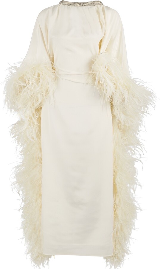 - Women's Fashion >Clothing >Dresses >Maxi Dresses > Vko - V Karla Onochie White Bridal Feather Kaftan Maxi Dress In Ivory