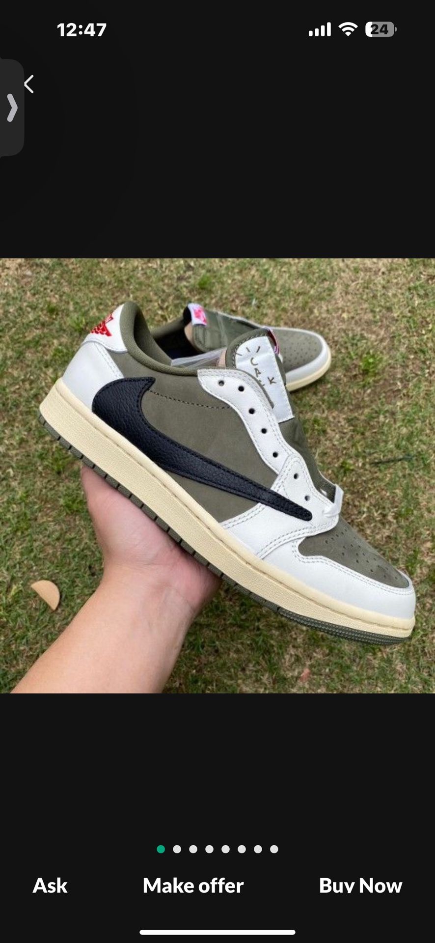 | Product Features | Travis Scott air Jordan 1 low medium oliveBrand new pair Authentic Size 13 | ||
