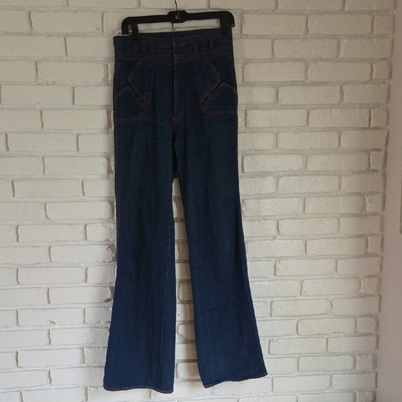 | Product Features | Vintage 70's n'est-ce pas? jeans. Elevate your style with these classic dark blue flare jeans. Perfect for a chic, casual look. 33" inseam | ||