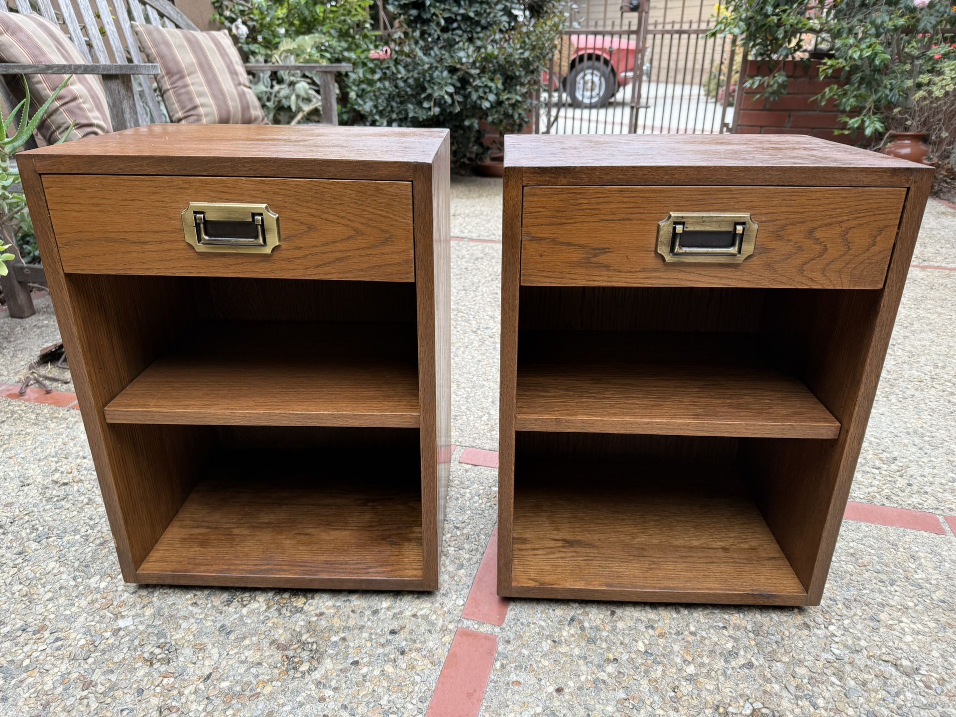 | Product Features | ***All reasonable offers will be thoughtfully considered***Up for sale is a 6-piece set of Drexel furniture. There is 1, 2-drawer and 2, 2-cabinet pieces which are stackable or stand-alone. (Only 1 of the cabinet pieces is pictured) Additionally, there is a drafting/entry table and 2 nightstand or end-tables. All are solid wood with matching hardware. The end tables have wood tops, and the other items have black slate (?) tops. See pictures. End tables are 22.5"H x 12"D x 16.5W2-drawer & cabinets are 20"H x 26"D x 37"WTable is 30"H x 24"D x 62"WFurniture is in good used condition and has decades of life left... this was made when furniture was meant to last a lifetime. Feel free to reach out with any questions. If posting is still up, it is still available. Thanks for looking & have a great day! | ||