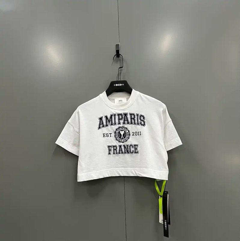 - Womenswear >Tops >Crop Tops > AMI Summer White Logo Crop T-Shirt 0089