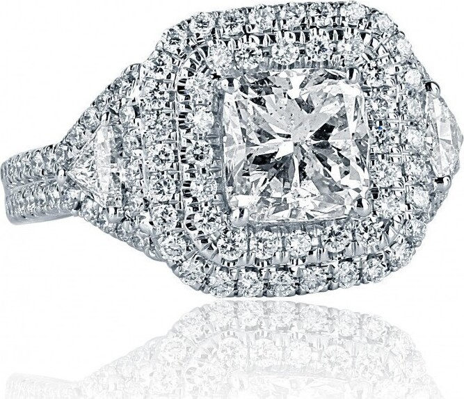 - Women's Fashion >Accessories >Jewelry >Fine Jewelry >Fine Rings > Etsy 2.90Ctw Cushion Cut Diamond Halo Engagement Ring, Trillion Side Stones, 18K White Gold
