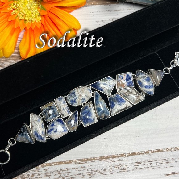- Women >Jewelry >Bracelets > Sodalite Bracelet Handmade Stone Gemstone 925 Silver Large Ethnic Bohemian New!