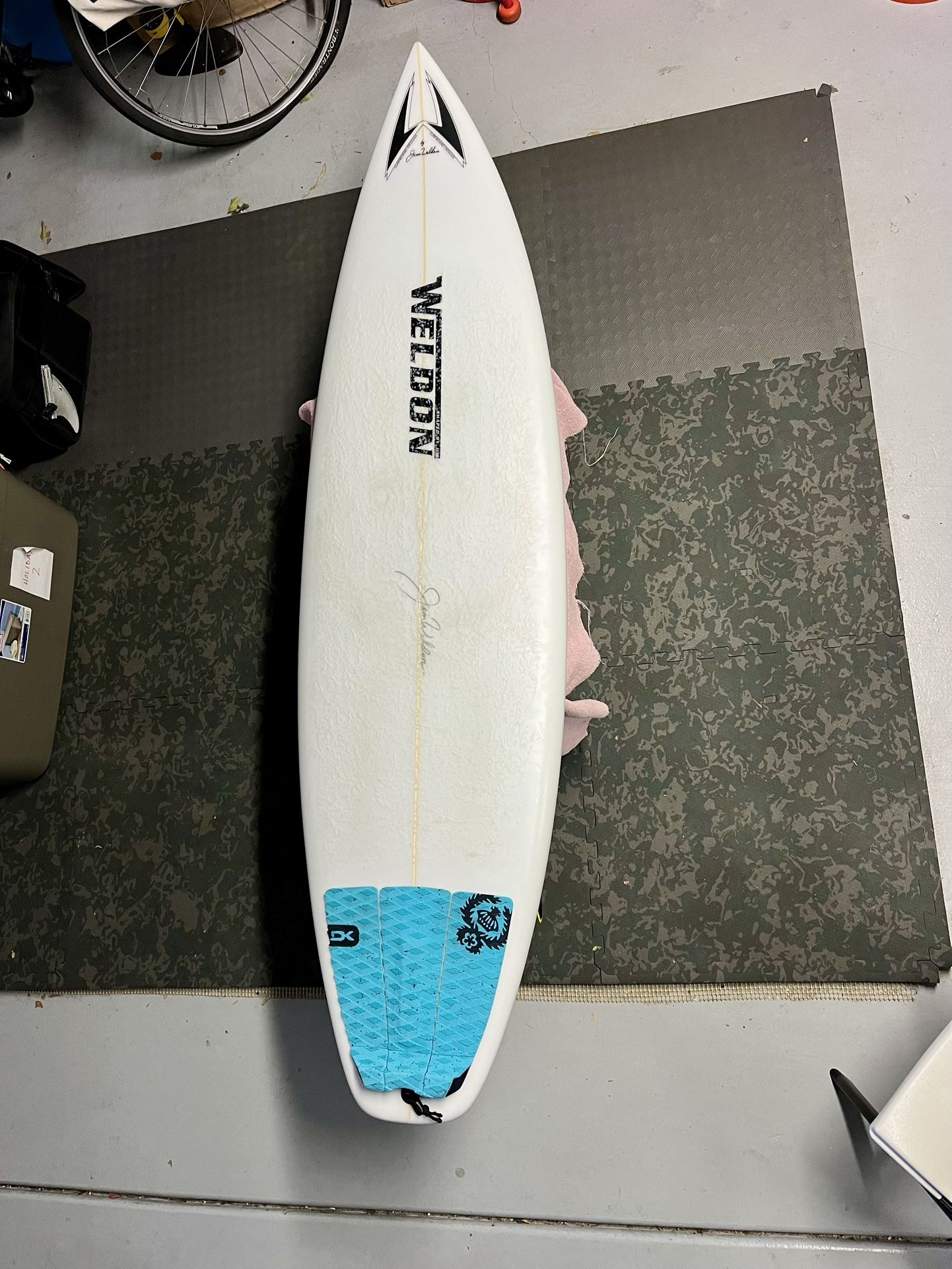 | Product Features | This is a brand new 5’6” x 17 1/8” x 2 3/16” Jim Weldon short board. Just acquired in September, ridden on 3 waves. Brand new condition. Set up for future fins. Great board for younger groms needing a little more volume to help get into waves. Awesome board for bigger groms looking to take their surfing to the next level on a high performance blade. Fantastic shape for just about any break anywhere near here. Jim Weldon is an “if you know you know” local Oside legend and master shaper. These don’t come around often. New is $800+. Details: Prefer to meet at Albertsons at 1571 San Elijo Rd S, San Marcos but may be able to meet elsewhere for serious buyers. Price is for board only, fins not included (but I do have a brand new set of small black/clear Captain Fin fins I can include for $30 more). Cash or Venmo only. | ||