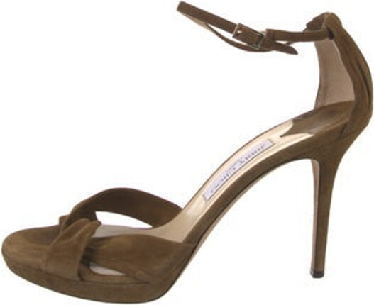 - Women's Fashion >Shoes >Sandals > Jimmy Choo Suede Sandals Neutrals Platform Crossover Straps & Buckle Closure at Ankles