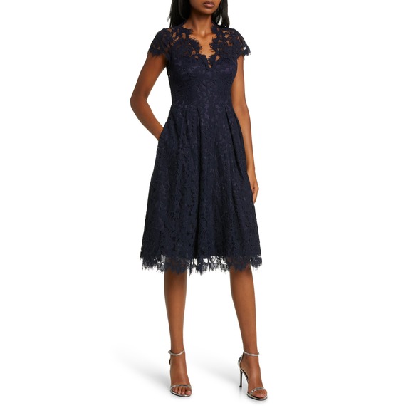 Eliza J Lace Fit & Flare Cocktail Dress in Navy Size 8