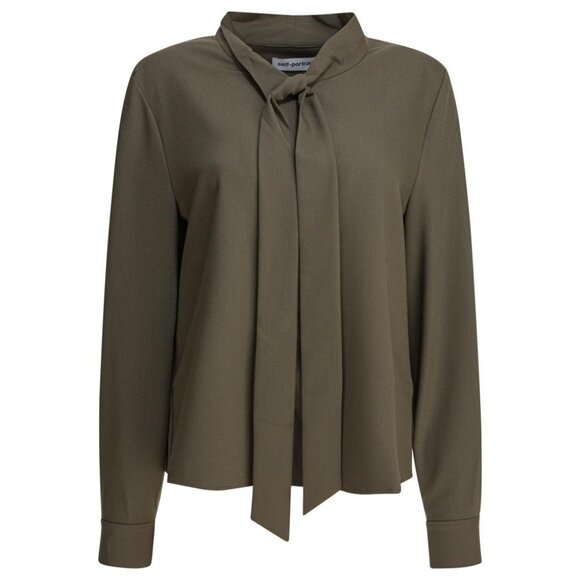 - Women >Tops > Self-Portrait Twill Blouse With Bow Collar tag size 12 Women