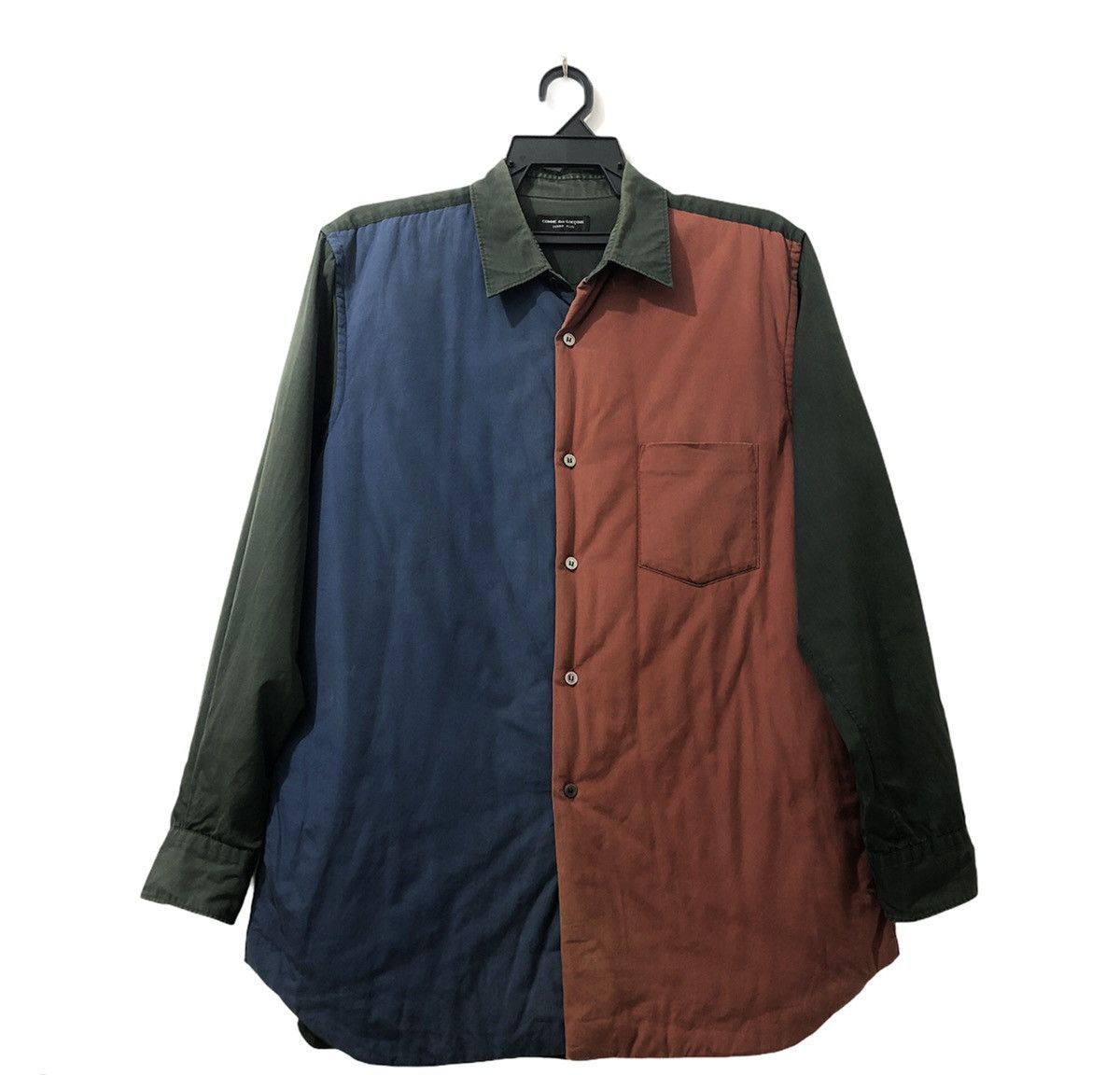 - Menswear >Tops >Long Sleeve T Shirts > CDGH Plus Button Up Shirt Multicolor Design Patchwork