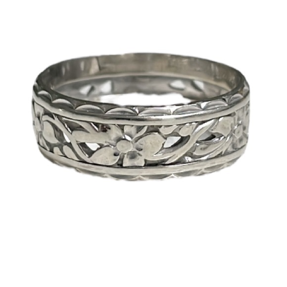 Vintage 14k white gold floral etched cut out engraved band ring size 7