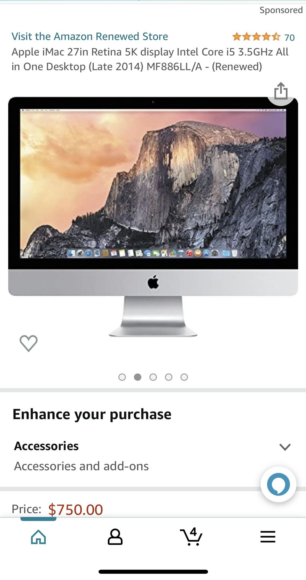 - Electronics & Media >Computers & Accessories >Desktops & All-in-ones > Apple iMac 27 inch Desktop Computer MK482LL/A 3.2GHz Intel Core i5, 32GB RAM, 3RB HDD Silver (Renewed) Apple iMac 27 inch Desktop