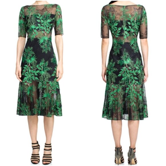 - Women >Dresses >Midi > NEW Tadashi Shoji Dakar Green Lace Midi Dress $498