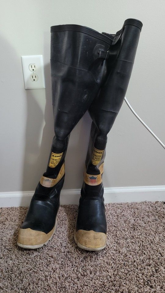 ranger firemaster hip boots vintage fireman bunker turnout size 10 cracks firefighter vintage