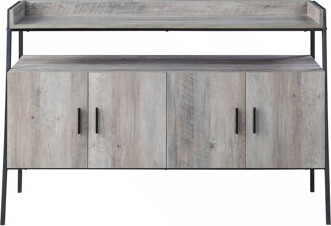 | Product Features | Details:This 52-inch TV stand is a perfect blend of style and functionality, designed to enhance any modern living room. The black metal frame provides a sturdy and durable structure, while the gray oak finish on the wooden storage section adds warmth and a neutral base that complements various decor styles. The trapezoidal silhouette and minimalist design create a clutter-free aesthetic, making it an ideal addition to contemporary spaces. Two wooden cabinets offer ample storage for personal items, keeping your living room organized and tidy. The rectangular tabletop and open bottom shelf provide ample space for your TV, Blu-ray player, and other media accessories, ensuring everything is within easy reach. With a maximum recommended TV size of 50 inches, this stand is perfect for creating a sleek and functional entertainment center in your home. 17 Stories | ||
