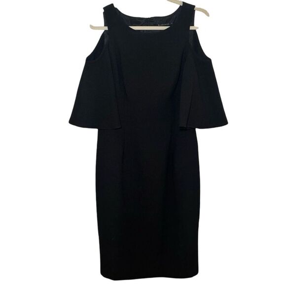 | Product Features | Black Halo Adera Cold Shoulder Dress. Worn once, no flaws. A stand out, flowy sleeved sheath made of our stretch pebble crepe. Style features cold shoulder detail to add edge to a polished silhouette. Fully lined with center back hidden zipper.Stock photos to show fit. Dress for sale is black. | ||