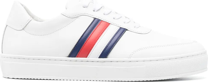 | Product Features | Details:optical white/navy blue/cardinal red calf leather stripe detailing logo-print tongue round toe front lace-up fastening branded insole flat rubber sole | ||