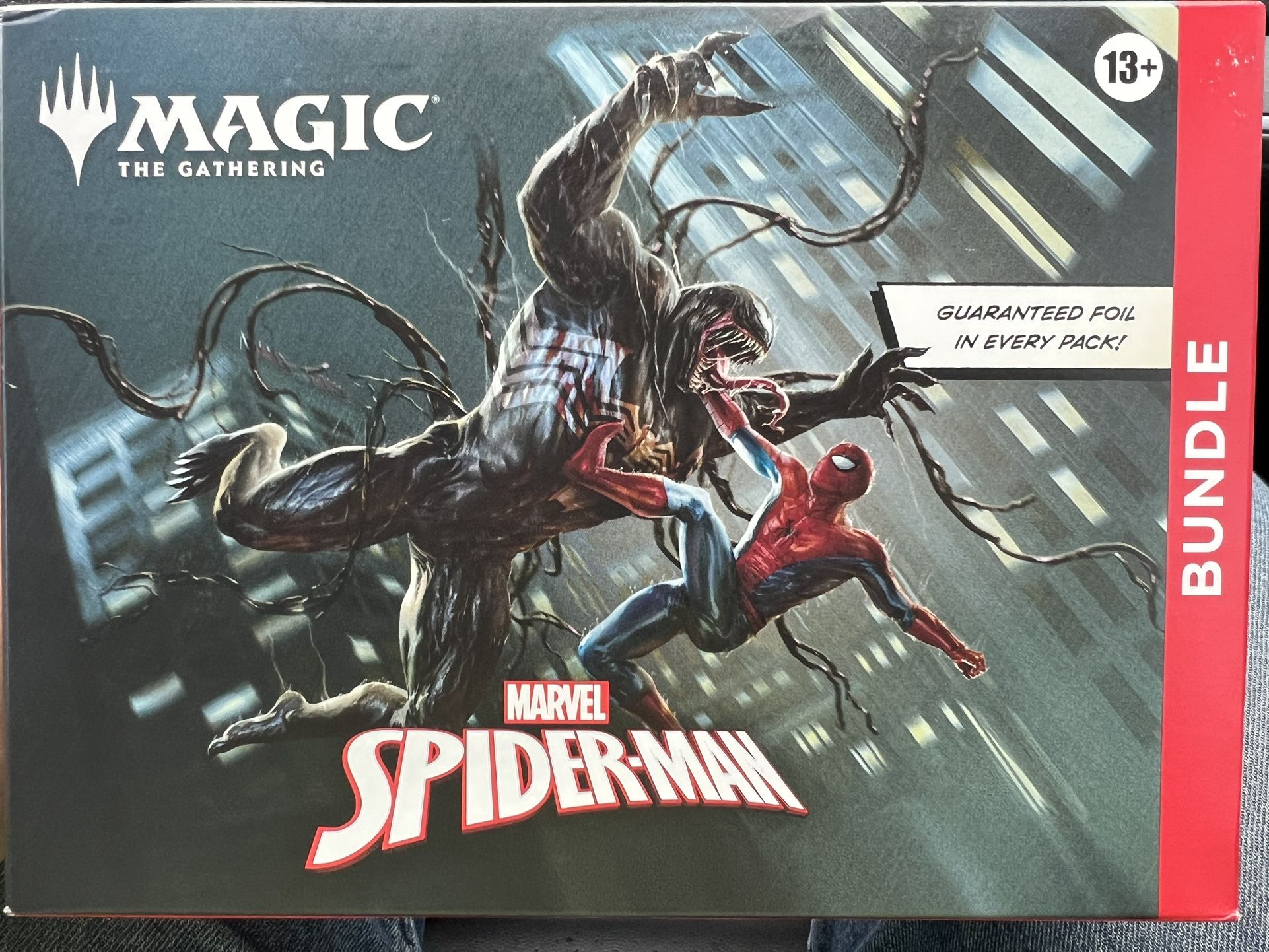 | Product Features | Magic the gathering X Spider-Man collab bundle (9) booster packs (1) oversized spindown life counter(5) traditional foil (5) regular full art (1) Alt art terditional foil (1) Spider-Man card box | ||