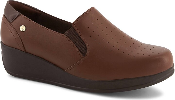 | Product Features | Details:Comfortable, stylish and adorably cute. These boho chic moccasins are the perfect shoe to throw on for grocery runs, school pick-ups or weekend soccer games!This Leather Moccasin features a genuine leather upper, 1.75-inch wedge heel, anti-slip outsole, and Dura-comfort insole for all-day comfort and stability. The round toe design adds a practical yet stylish touch. | ||