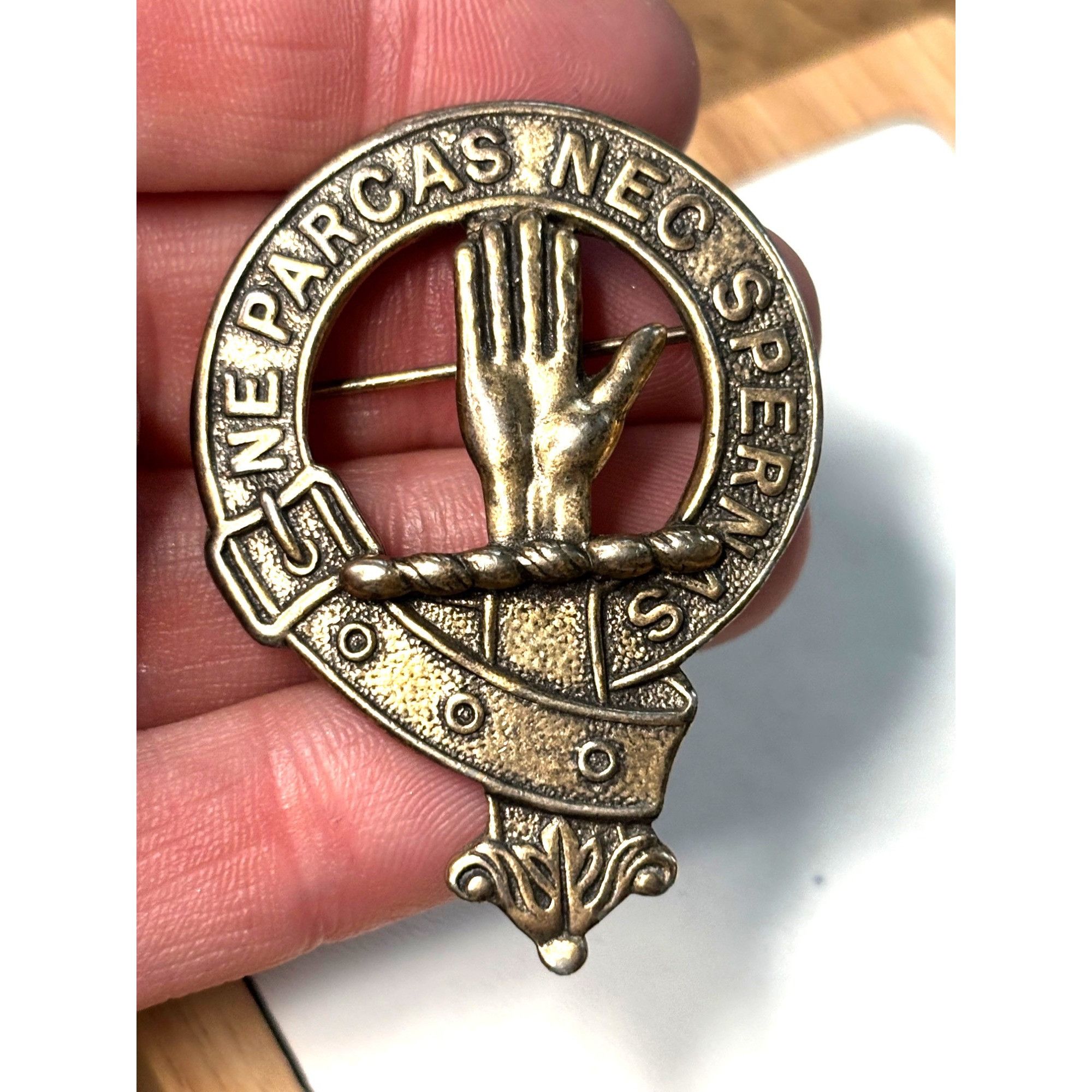 Vintage Clan Lamont Crest Badge Brooch Pin With Latin Motto