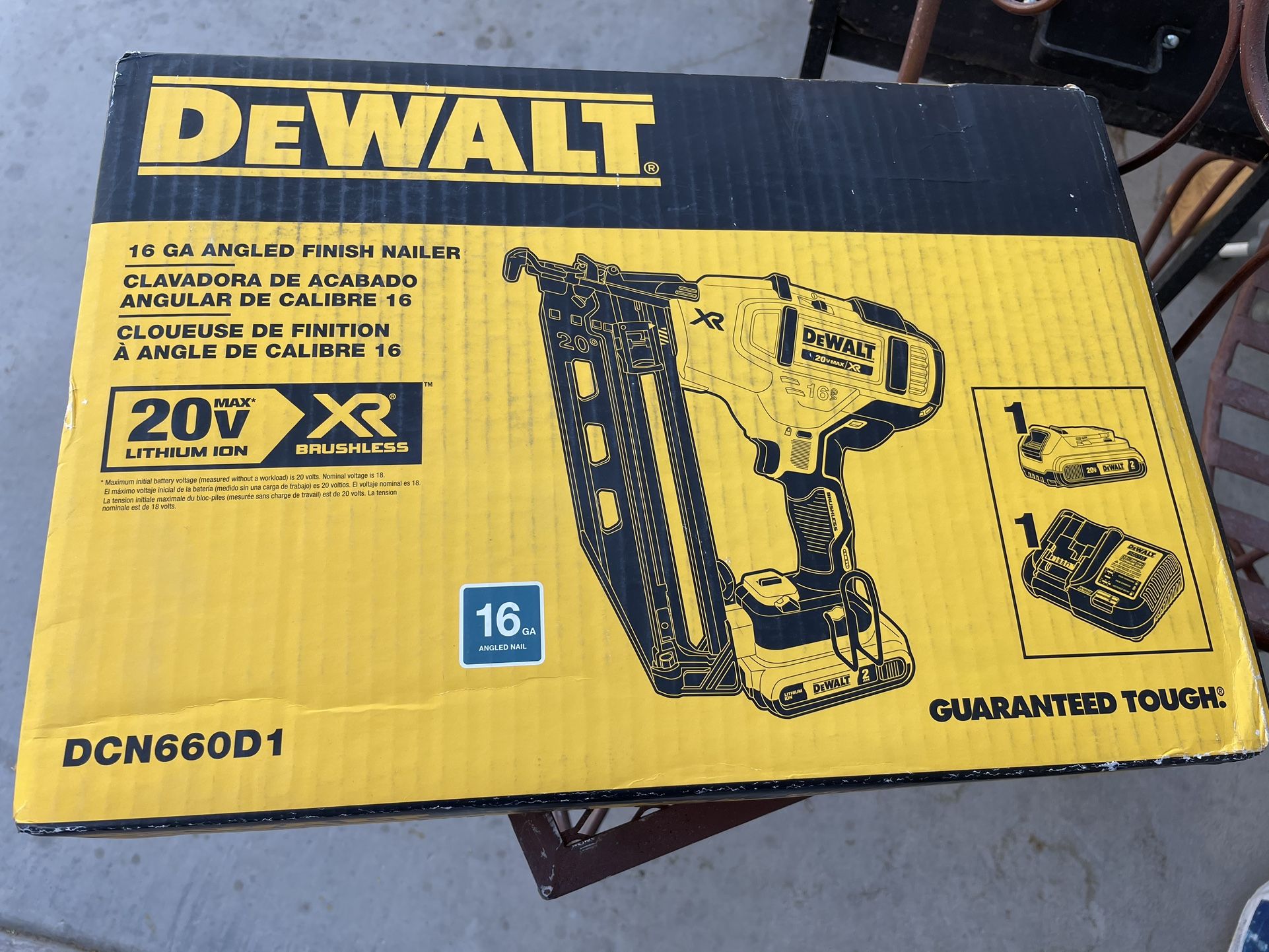 - Home & Garden >Tools & Machinery > Dewalt 16g Angled Finish Nailer Kit