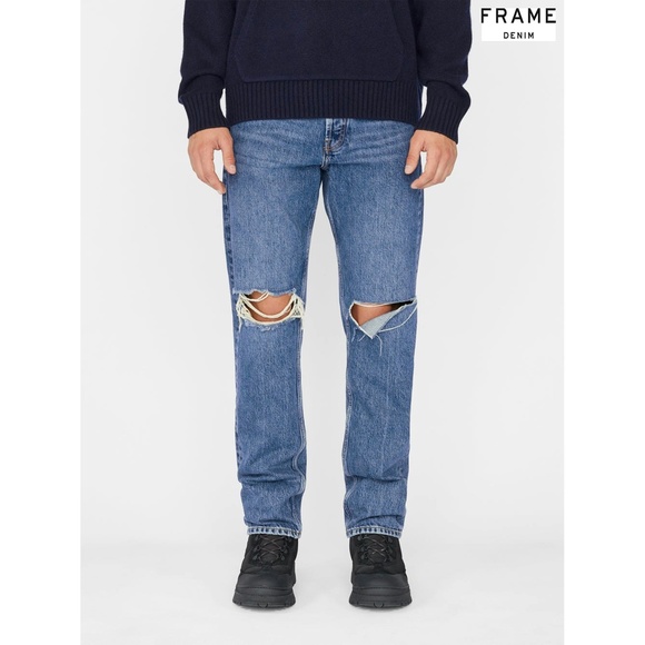 | Product Features | BRAND NEW WITH TAGS FRAME DENIM THE STRAIGHT LEG ITASKA DESTRUCT JEANS.100% authentic. Style: LMHST727-ITASWash: Itaska DestructComposition: 100% CottonWith a mid-rise fit and a clean, straight-leg silhouette, this button-fly jean is cut from responsibly washedrigid denim that breaks in perfectly for a personal fit. Itsaka Destruct is a vintage-inspired indigo wash withripped knees and grinding, for a broken-in look that feels both laid-back and pulled together.- Button fly closure- 5 pocket construction- Rigit Denim- Indigo wash- Straight leg- Destructed details- Machine wash cold- ImportedSize: W34 X L32Actual measurements in inches (straight across lying flat)approximately: waistband 17"hips (from the bottom of the fly) 22"front rise 11.5"back rise 16"bottom leg opening8"inseam 32.25"MSRP: $268 | ||