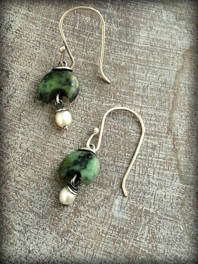 Etsy African Green Turquoise Crescent Beads, White Pearl Dangle Earrings, Sterling Crescents, June Birthstone, Earring