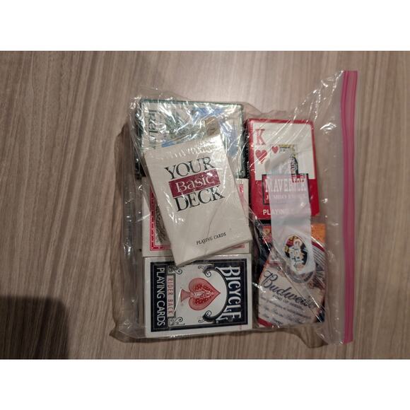 | Product Features | Bulk Lot of 16 New Old Stock (NOS) Playing Card DecksThis diverse collection features 16 individual decks of playing cards, all in New Old Stock condition. This lot is perfect for collectors, gift-giving, or resale, featuring a mix of iconic brands and pop culture themes.Featured Themes Include:Harley-DavidsonMarvel Spider-ManBudweiserAnd various other collectible brands/designsWhat You Get: New / Old StockThis listing includes sixteen (16) individual decks. While these are vintage/older stock, they remain in their original packaging:16 Authentic Playing Card Decks (Assorted Themes).Original Retail/Promotional Tuck Boxes for each deck.Most decks remain factory sealed (see photos for specific seal status).Condition DisclaimerCondition: New Old Stock. Some outer boxes may show light shelf wear consistent with age.Please Note: Please review all images carefully to evaluate the exact cosmetic condition and specific titles included before purchasing. | ||