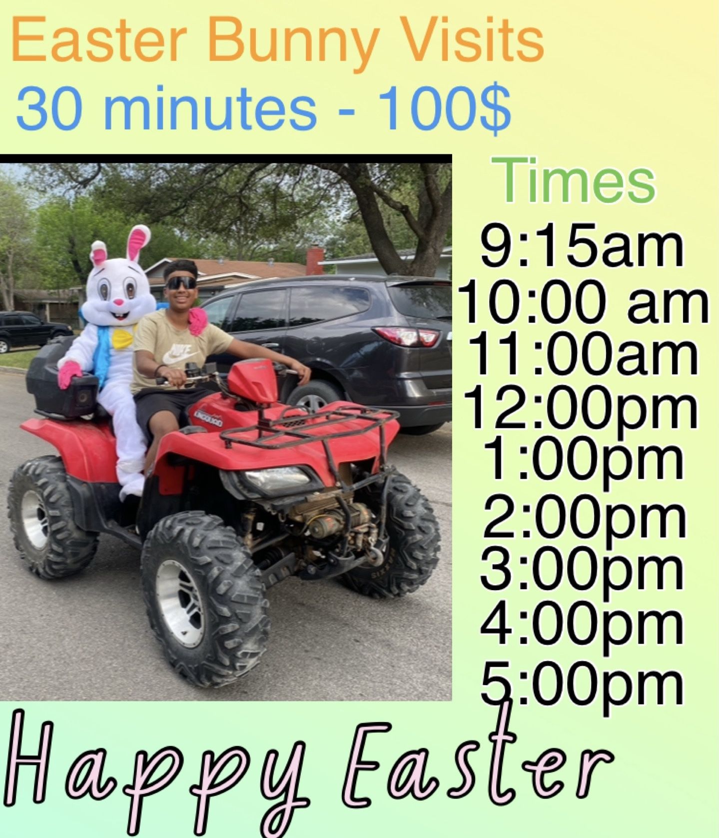 | Product Features | Easter Bunny Visits! 30 minute visits for 100$ Includes Easter egg hunt for the kiddos as well as a backdrop for photos . Message me for more details and availability. | ||