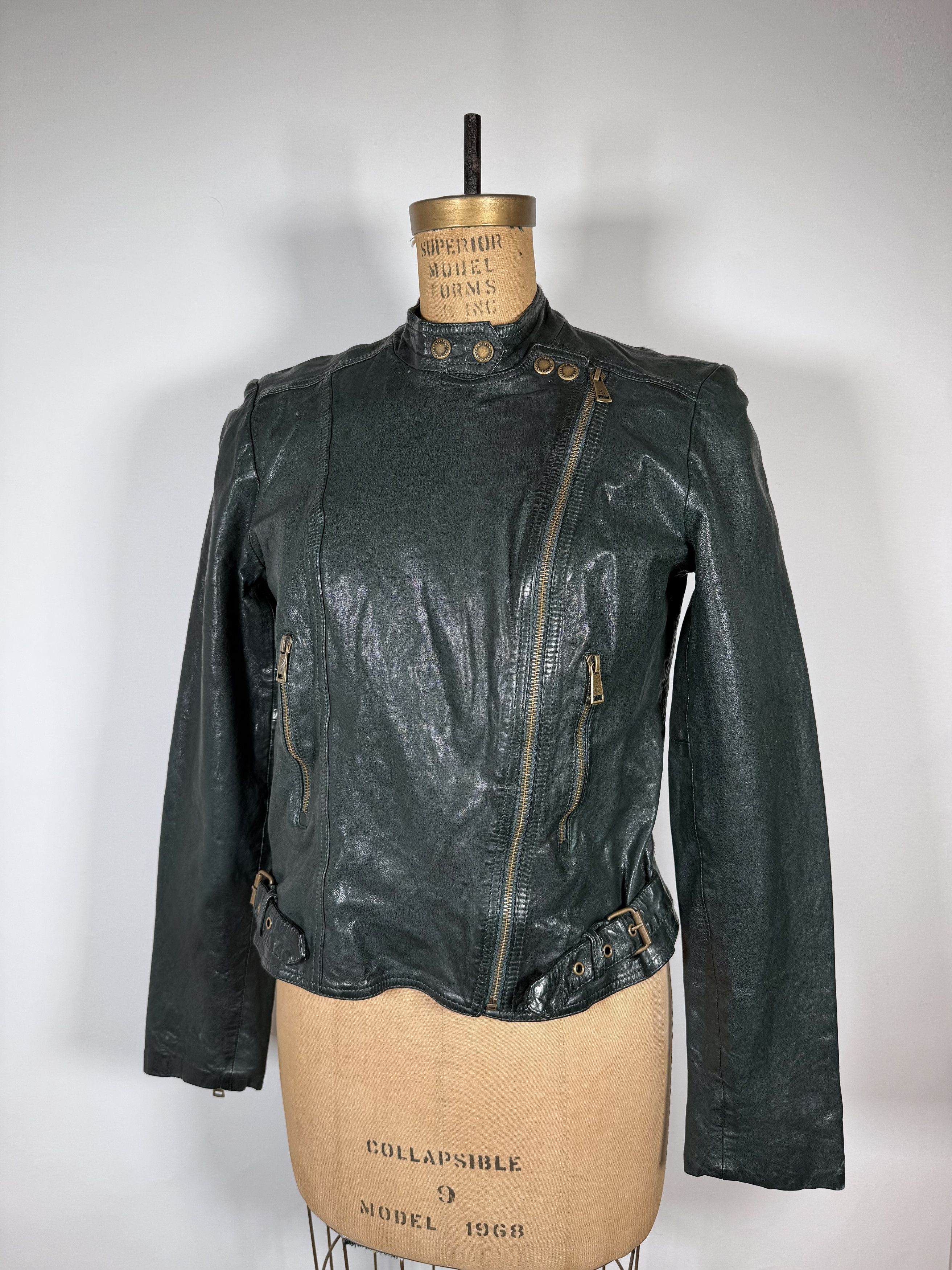 Rare Lauren Ralph Lauren Dark Green Leather Biker Jacket
