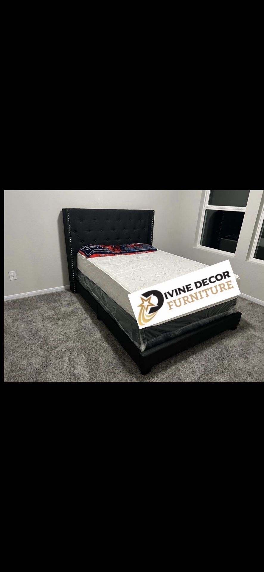 NEW IN BOX QUEEN UPHOLSTERED BED FRAME PLATFORM 😊 MATTRESS SOLD SEPARATELY