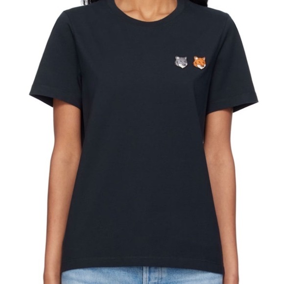 - Women >Tops >Tees - Short Sleeve > Maison Kitsuné Double Embroidered Fox Head Patch T-Shirt Black Size M Authentic