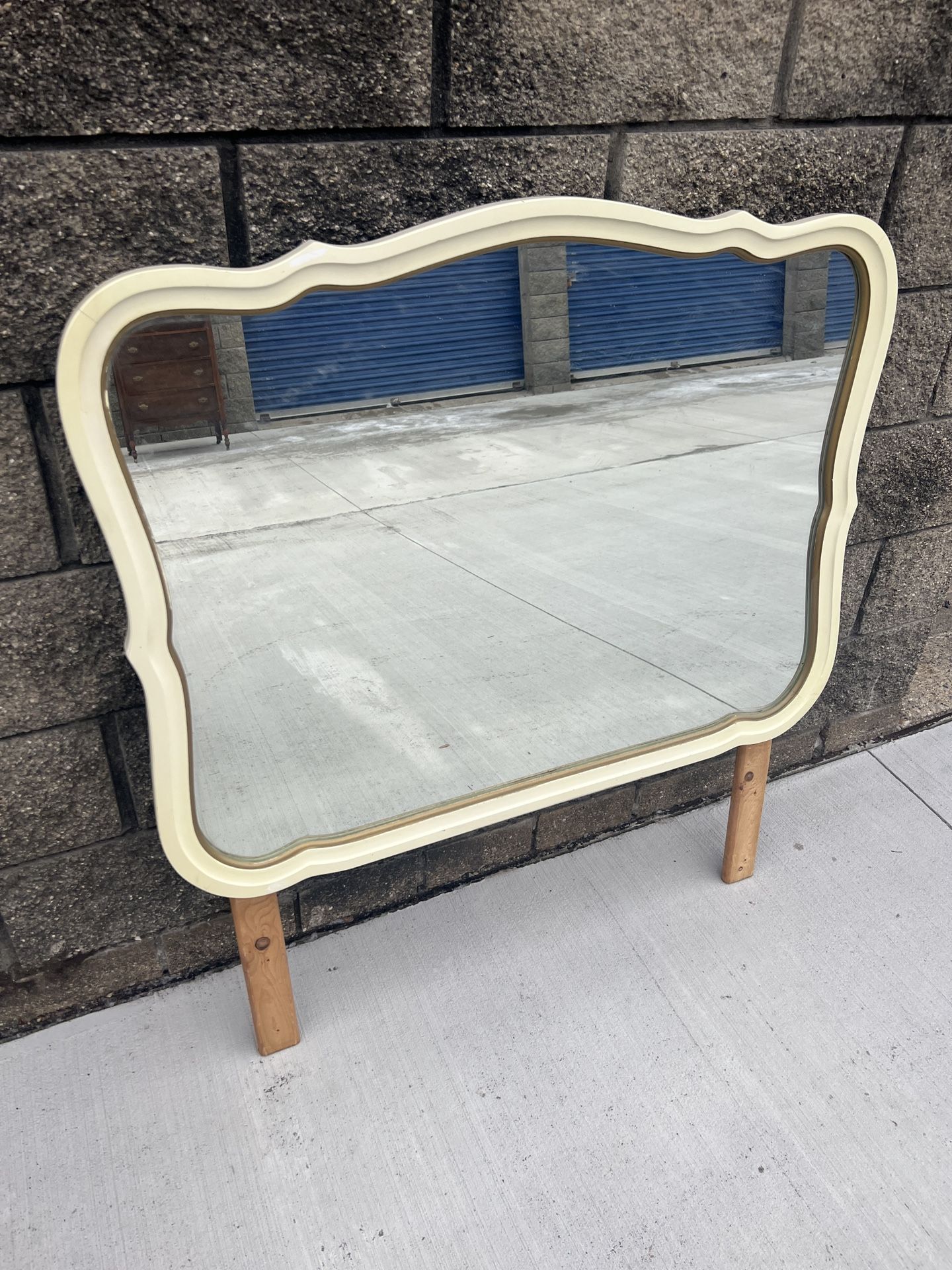 | Product Features | French Provincial mirror….good condition and comes with wood support brackets and hooks if you want to hang it. Measurements are 38 1/2” wide and 30” tall. POOS | ||